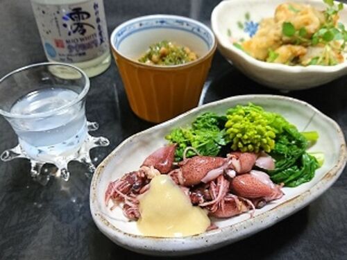 3月19日(火) 今宵は 旬のホタルイカで カンパ~イ♪ 春限定 澪ホワイトで。 たまには 日本酒も いいですね。(^-^)