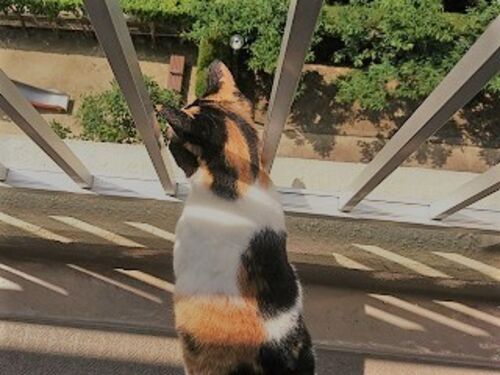 7月24日(水) はれ。 今朝も いいお天気ニャッ♪ ベランダ菜園、チェックするニャッ♪ ~♪ コタちゃん、葉っぱ 食べないでー ミケちゃんも、コラコラ。 部屋にもどって、コロコロ。