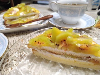 2023-01-03 キウイフルーツをいただきました♪ ♪ぐるぐるグルマン 従姉からのいただきもの国産キウイのレインボーレッド 中心部分が赤色の珍しいキウイそのまま食べても とっても甘~い♪ キウイフルーツサンドを作りました 朝からリッチな気分♪ ファミマスイーツに 盛り盛りサンド♪いつもありがとう~