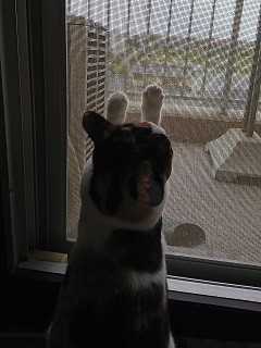 2017-06-17 ベランダ好きニャ。 ♪コタロー&ミケル 6月17日(土) はれ。 ベランダに出たくって、 網戸ガリガリ。 ペット用の網だから ガリガリしても 大丈夫。(^-^) ちょっと出かけなくちゃ… 戻るまで 待っててね。 ベランダ近くから 離れないミケコタでした。