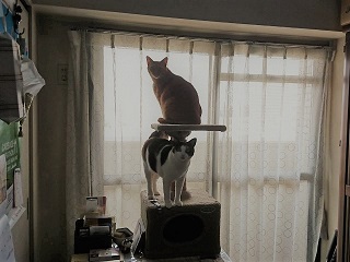 2019-04-20 日向ぼっこ♪ ♪コタロー&ミケル 4月20日(土) はれ。 おかえりニャ~ ただいま~♪ あら、起きてたのね。(^-^) ベランダ 好きニャ~♪ 日の当たるベランダに 一目散の ミケコタです。